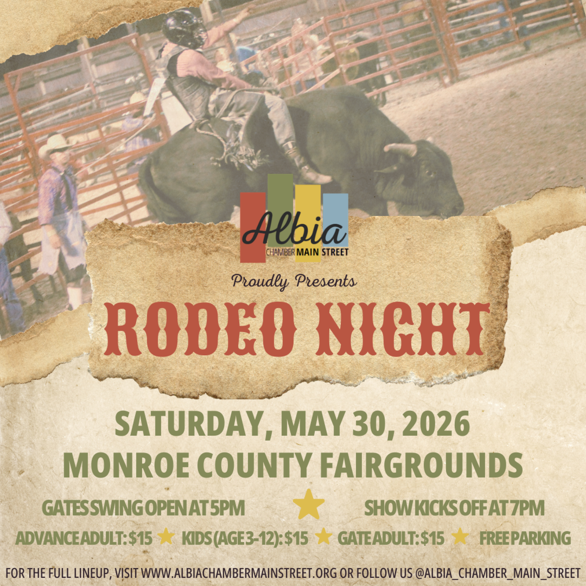 The Albia Chamber Main Street Rodeo is one of Albia’s most anticipated annual events, bringing high‑energy rodeo action, family fun, and community pride to the Monroe County Fairgrounds. Now celebrating 10 years, this event is produced in partnership with Rogue Rodeo Productions and supported by dedicated volunteers who work year‑round to make it a standout experience.